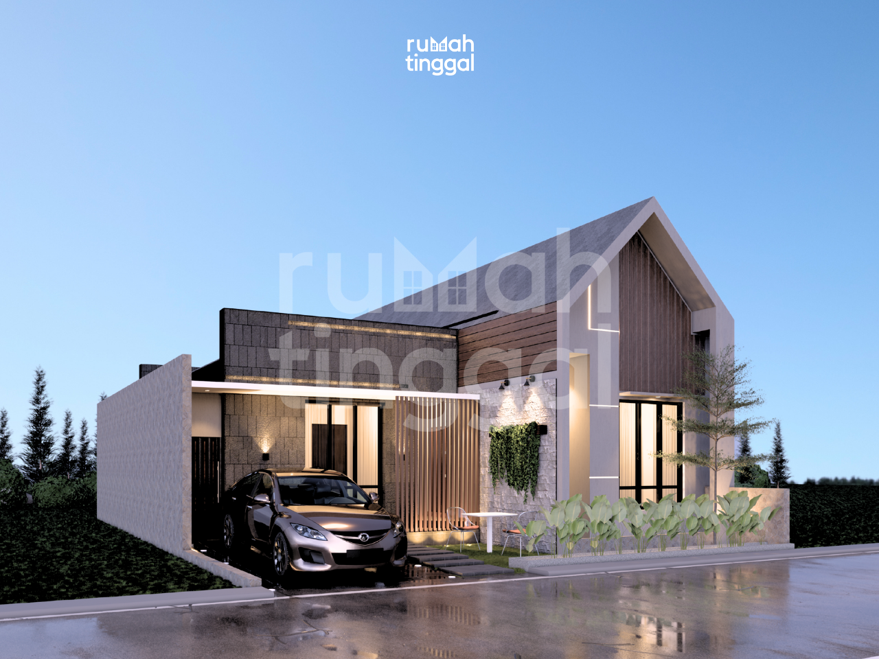 SOVEREIGN HOUSE, rumah tinggal 1 lantai dengan luas bangunan 116.84 m2 yang didesain di atas lahan berukuran 10.00 m x 16.00 m (160.00 m2). Hunian ini didesain bergaya modern, tropis, dan contemporer. Area depan terdapat taman dan carport yang memuat 1 mobil . Pintu masuk utama dapat diakses melalui area carport yang diberi pembatas sehingga dapat menjaga privasi dari pengguna . Untuk ruangan yang disediakan ialah ruang tamu, ruang keluarga, 3 kamar tidur, 2 toilet, dapur, pantry, serta taman indoor yang memberikan keindahan tersendiri pada ruang dalam rumah ini. Hunian yang berdesainkan modern, tropis, dan contemporer akan memperlihatkan desain bangunan yang kekinian. Mulai dari tampak d e p a n yang didesai n menggunakan material batu alam, konkret, serta material kayu yang memberikan kesan tropis pada rumah ini. Pada bagian belakang carport juga diberikan akses yang juga dapat berfungsi sebagai taman bagi pengguna, pada akses ini juga didesain untuk memberikan kesan tropical contemporer dengan material yang digunakan.