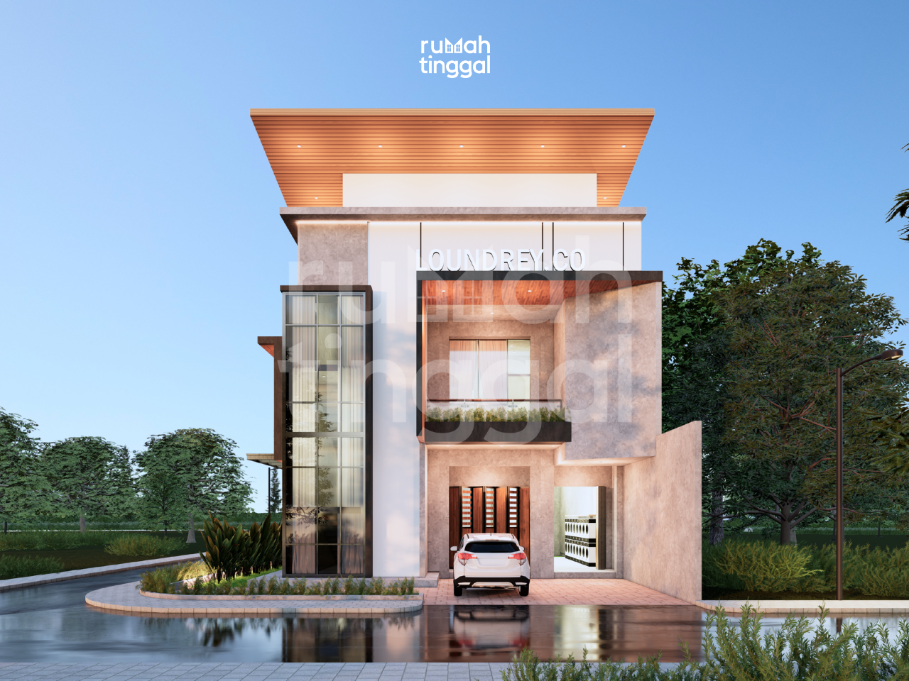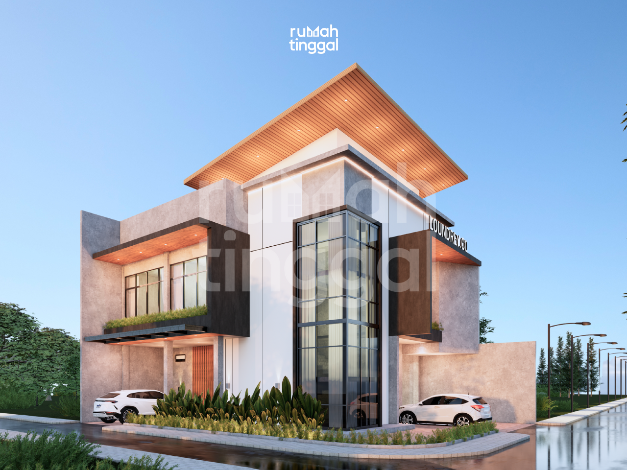 LOUNDREY.CO adalah sebuah ruko laundry coin yang dibangin diatas lahan 13 meter x 18 meter di hook jalan. Dengan detail lantai 1 dibuat untuk lantai usaha dan lantai 2 dibuat untuk rumah tinggal. Loundrey.co menggunakan konsep industrial dan tropical. Lantai 1 adalah lantai usaha atau lantai khusus untuk pelanggan laundry coin. Laundry coin adalah usaha yang kebanyakan merupakan self service sehingga luas lantai usaha dibuat luas. lantail ini sudah lengkap dengan toilet yang memnuhi standar toilet disabilitas. Pada laundry coin ini konsepnya adalah self service sehingga untuk pembelian coin, sabun, dan makanan terdapat vending machine. Sedangkan pada lantai 2 merupakan area rumah tinggal yang terdiri dari 3 kamar tidur, 2 toilet, 1 walk in closet, ruang keluarga, ruang makan, dan dapur. Area ruang keluarga, ruang makan, dan dapur dibuat open space. Serta ada juga tambahan rooftop. Bangunan ini didesain dengan konsep industrial dan tropis. Didominasi dinding concrete sebagai aksen industrial dan WCP kayu sebagai aksen tropical dan alam. Terdapat 2 entrance dalam bangunan ini, yaitu entrance khusus elanggan dan penghuni. ada juga pintu tersembunyi sebagai enghubung area penghuni dan pelanggan. Terdapat rooftop sebagai tempat tandon dengan atap yang tersembunyi.