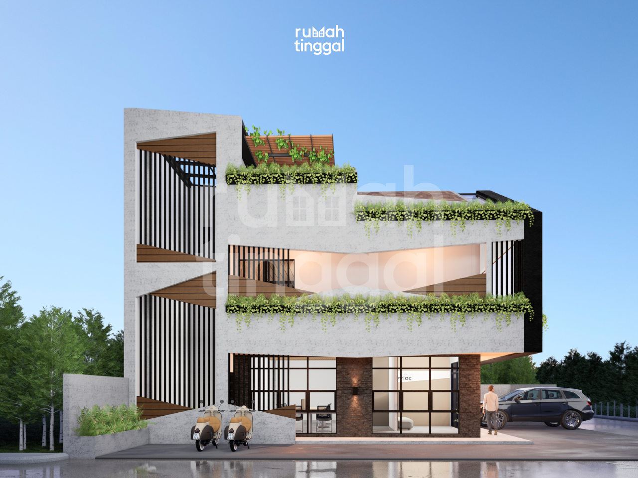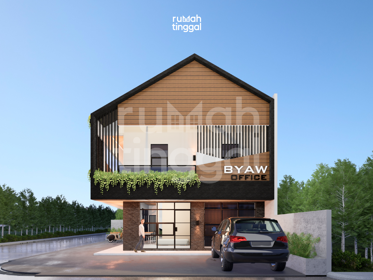 BYAW OFFICE merupakan bangunan mixed use dengan fungsi berupa kantor start-up dan tempat tinggal untuk karyawan. Bangunan terdiri atas 2 lantai dengan 1 roof top. Dengan luas total bangunan 241 m2 yang didesain di atas lahan berukuran 12.00 m x 17.00 m (204 m2). Bergaya industrial, tropis, dan modern yang mencirikan jiwa muda generasi milenial. Lantai 1 difungsikan sebagai kantor. Dengan area depan dimaksimalkan sebagai tempat parkir mobil dan motor. Untuk pintu masuk kantor terdapat pada depan bangunan. Tatanan ruang pada lantai 1 terdapat ruang tunggu, ruang kerja, pantry, ruang rapat dan toilet. Bagian belakang didesain semi terbuka sebagai area tangga yang berdampingan dengan taman. Area tangga dapat diakses dari dalam kantor maupun dari luar bangunan dengan pintu yang berada di bagian sisi samping bangunan. Pada lantai 2 terdapat 2 kamar tidur dengan masing-masing kamar memiliki kapasitas 2 orang. Terdapat pula balkon, ruang keluarga, dapur, dan kamar mandi. Lalu pada roof top terdapat ruang cuci dan jemur, serta area yang dapat difungsikan sebagai tempat bersantai. Tampak bangunan didominasi oleh penggunaan beton ekspose tanpa finishing, elemen kayu, dan aksen batu alam pada dinding. Adapun elemen vegetasi pada dinding yang memperkuat nuansa tropis.