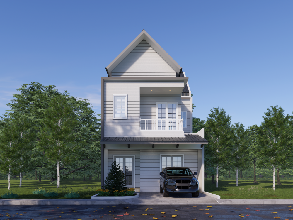 Rumah huni 2 lantai dengan luas 188,13m2 yang berdiri di lahan berukuran 140m2 dengan 1 muka Dengan langgam arsitektur Victorian House. Dengan tatanan ruang yang ada pada lantai dasar terdapat area entrance, satu ruang tamu, satu kamar tidur, satu kamar tidur pembantu beserta kamar mandi dan toilet di area paling belakang, satu kamar mandi & toilet tamu di bawah bordes tangga, serta terdapat area dapur dan ruang makan dengan konsep tatanan ruang open layout dengan view taman. Pada fasad bangunan rumah terdapat material yang memperkuat konsep arsitektur Victorian yakni dengan material panel kayu komposit warna putih tulang.. Penggunaan material kusen alumunium dengan model klasik pada jendela-jendelanya sebagai bukaan ruang yang memperkuat konsep Victorian house rumah tersebut.