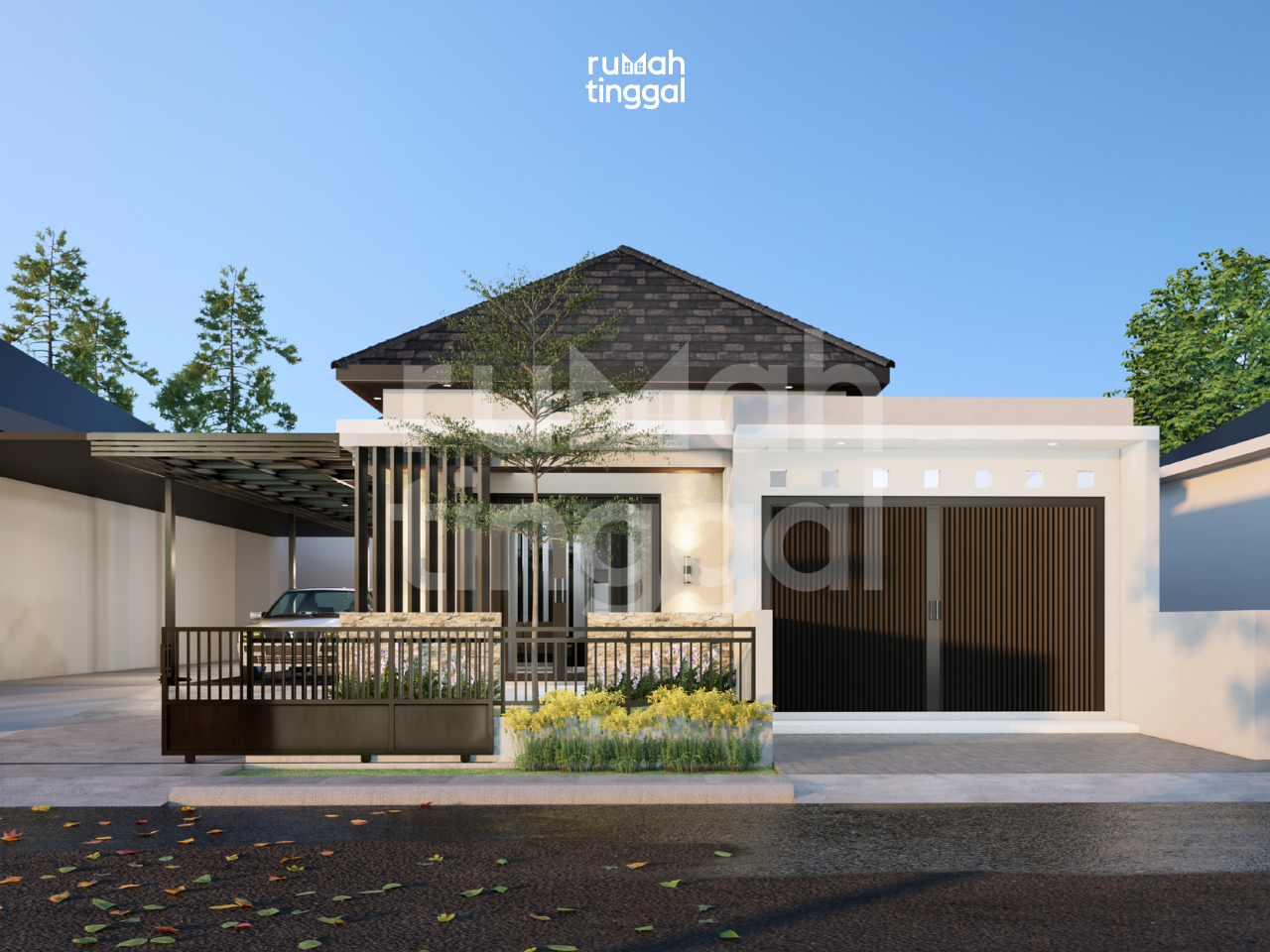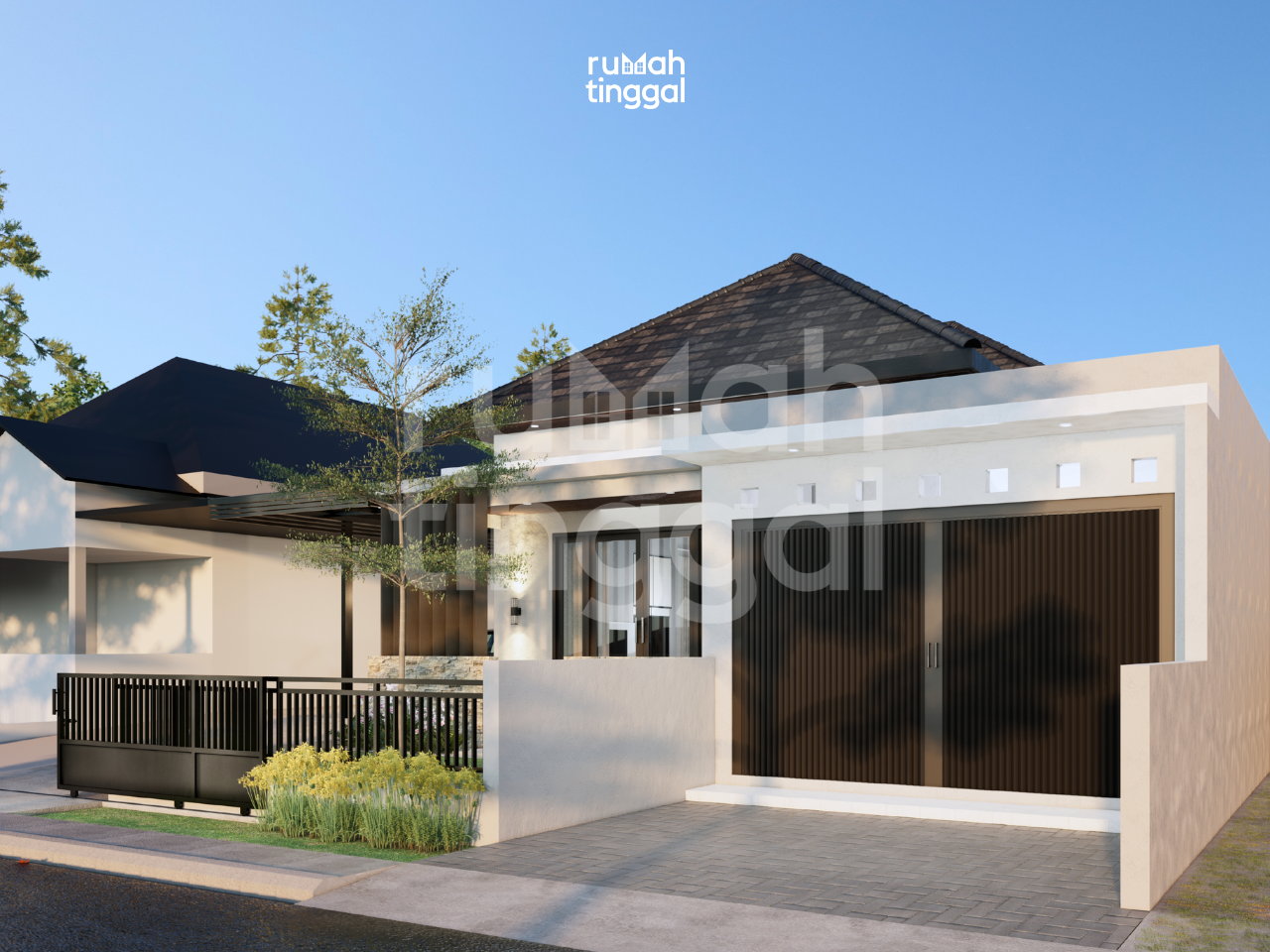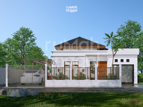 HARMONY RESIDENCE, rumah tinggal 1 lantai dengan luas bangunan 114,43 m2 yang didesain di atas lahan berukuran 12.00 m x 23.50 m (225 m2). Hunian ini didesain bergaya modern, tropis, Minimalis. Area depan terdapat taman dan carport dan area samping terdapat Garasi yang memuat 1 mobil dan 2 motor. Pintu masuk utama hunian berada langsung didepan. Tatanan ruang pada lantai 1 terdapat ruang tamu yang luas. Area ruang keluarga, ruang makan dan dapur didesain tanpa sekat sehingga terasa lebih luas. Selain itu juga terdapat 1 kamar tidur utama dan 2 kamar tidur anak, kamar mandi, mushalla, tempat wudhu, serta area cuci dan jemur. Pada bagian belakang dan samping kanan terdapat taman yang menjadi potensi view untuk ruang tengah. Hunian ini didesain dengan konsep modern, tropis, dan Minimalis. Tampak depan bangunan didominasi oleh penggunaan beton ekspose tanpa finishing, material kayu untuk pintu dan jendela, warna cat yang cerah dan natural, serta aksen acian pada bagian pagar. Atap dengan tritisan yang lebar, bukaan jendela kaca yang lebar dan tinggi, ditambah dengan vegetasi yang asri memperkuat nuansa tropis pada hunian ini. Rumah ini juga di rancang yang dengan keinginan klien dimana ada unit usaha yang langsung berhubungan dengan rumah, yaitu toko sembako pada area depan samping kanan, toko ini bisa di akses melalui area ruang tamu dan teras depan.