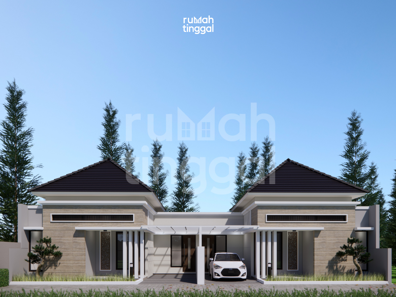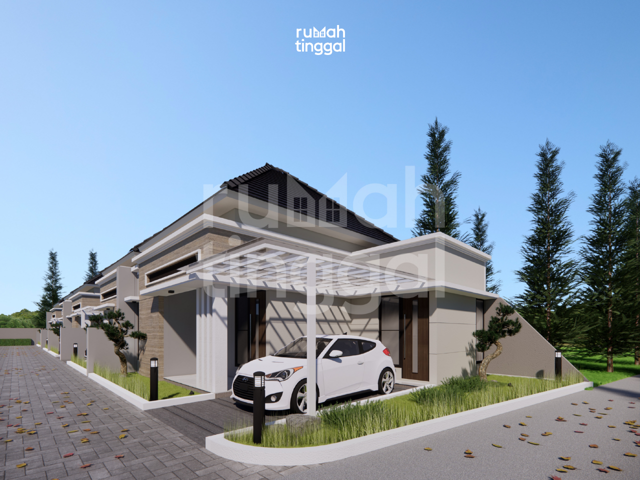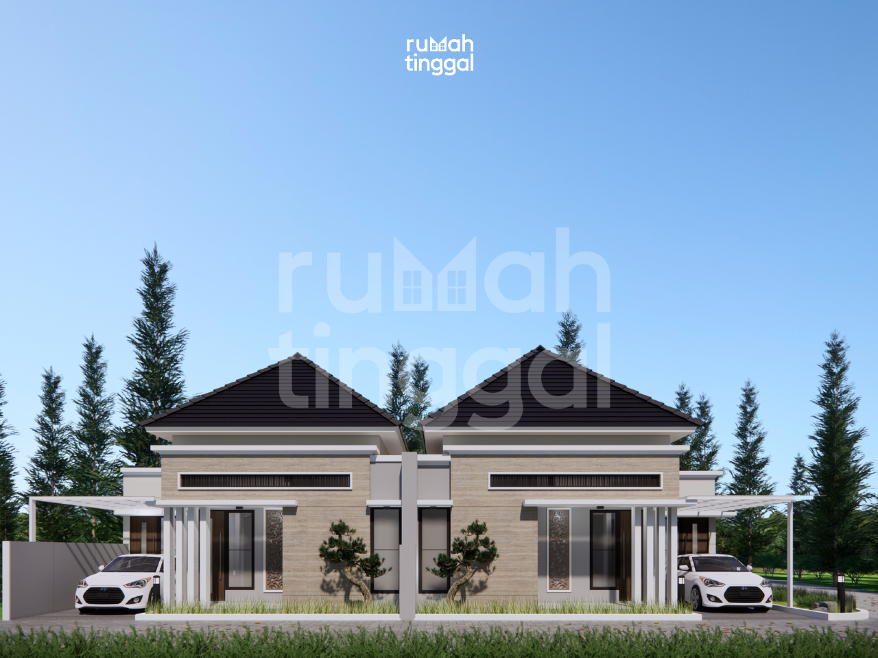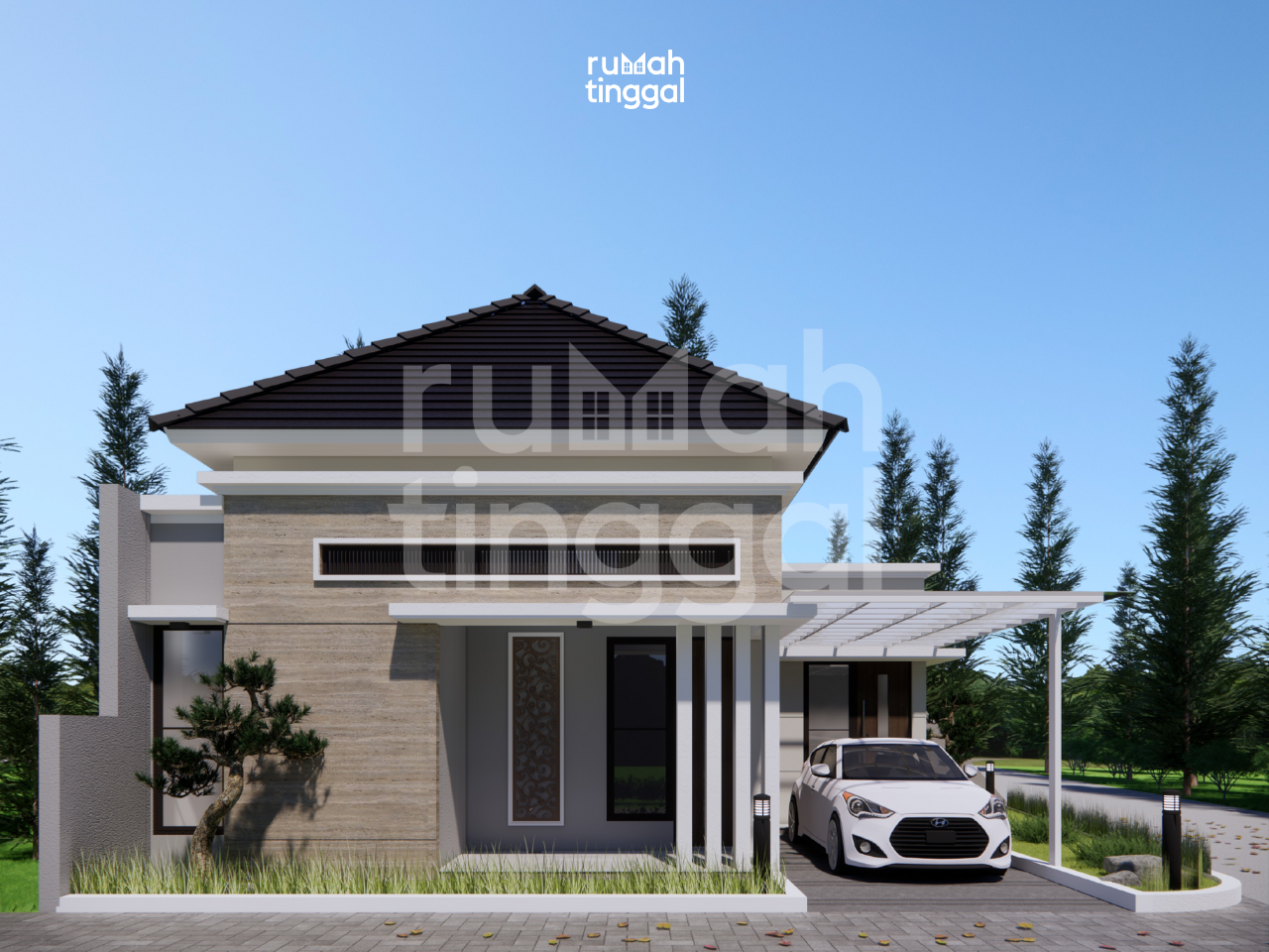 MINIMALIST HOOK CLUSTER, rumah tinggal 1 lantai di cluster perumahan, dengan luas bangunan 53.6 m2 yang didesain di atas lahan hook berukuran 13m x 10m (115 m2). Hunian ini didesain bergaya modern, minimalis, tropis. Area depan terdapat taman depan & samping, serta carport yang memuat 1 mobil. Pintu masuk utama hunian berada langsung didepan. Tatanan ruang pada lantai 1 terdapat ruang tamu yang menyatu dengan ruang keluarga, Ruang makan dan dapur didesain tanpa sekat sehingga terasa lebih luas. Selain itu juga terdapat 2 kamar tidur utama dan 1 toilet. Pada bagian belakang terdapat taman dan bisa digunakan sebagai area cuci jemur. Hunian ini didesain dengan konsep modern, minimalis, tropis. Tampak depan bangunan terdapat aksen batu alam, material kayu untuk pintu dan jendela, serta warna cat yang cerah dan natural. Atap limasan dengan tritisan yang lebar, bukaan jendela kaca yang lebar dan tinggi, ditambah dengan vegetasi yang asri memperkuat nuansa tropis pada hunian ini.