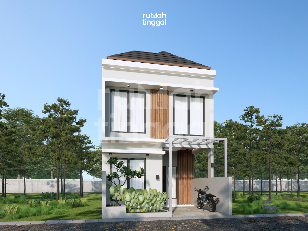 Rumah tinggal 2 lantai dengan luas bangunan 84 m2 yang didesain di atas lahan berukuran 6.00 m x 9.00 m (54 m2). Hunian ini didesain bergaya modern, tropis, minimalis. Area depan terdapat taman dan carport yang memuat 1 mobil. Pintu masuk utama hunian melalui teras. Tatanan ruang pada lantai 1 terdapat ruang tamu yang luas., dapur didesain tanpa sekat sehingga terasa lebih luas. Selain itu juga terdapat 1 kamar tidur, kamar mandi. Pada bagian Sampinf terdapat taman yang menjadi potensi view untuk ruang tengah. Pada lantai 2 terdapat 2 kamar tidur anak dengan kamar mandi luar. Terdapat pula ruang keluarga yang terhubung dengan balkon pada sisi depan dan sisi belakang. Hunian ini didesain dengan konsep modern, tropis, dan minimalis. Tampak depan bangunan didominasi oleh penggunaan beton ekspose tanpa finishing, material aluminium untuk pintu dan jendela, warna cat yang cerah dan natural, r. Atap dengan tritisan yang lebar, bukaan jendela kaca yang lebar dan tinggi, ditambah dengan vegetasi yang asri memperkuat nuansa tropis pada hunian ini.