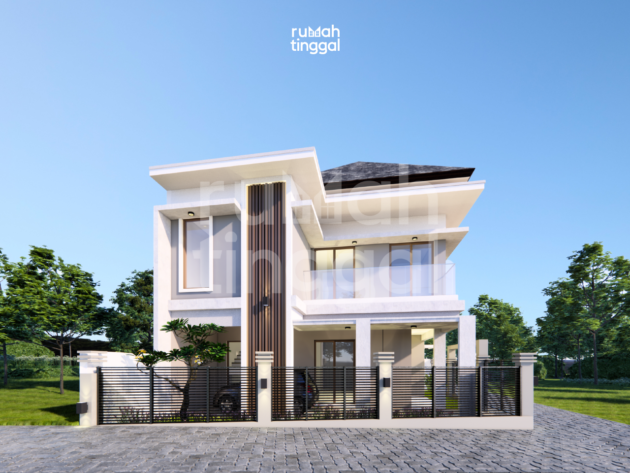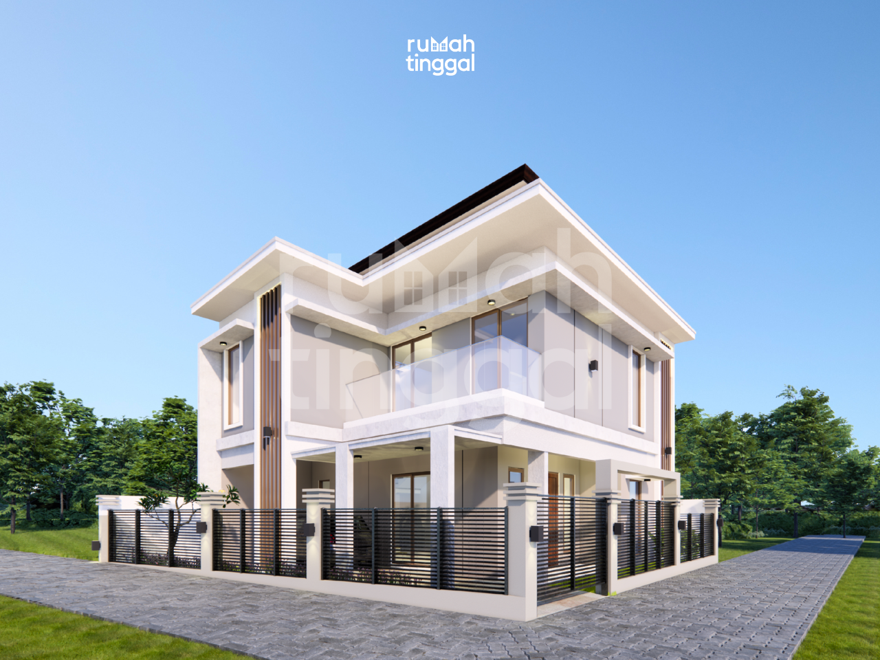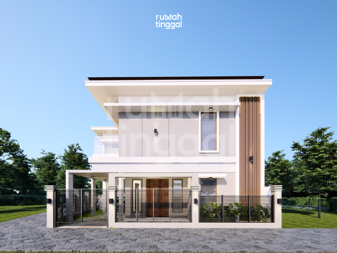 Rumah tinggal 2 lantai dengan luas bangunan m2 yang didesain di atas 186,60 lahan berukuran 11.00 m x 12.00 m (132 m2). Hunian ini didesain bergaya kontemporer, minimalis, modern. Area depan terdapat taman dan carport memanjang ke belakang yang memuat 2 mobil. Tatanan ruang pada lantai 1 terdapat ruang tamu yang luas dan terhubung dengan taman indoor. Ruang tamu didesain tanpa sekat dengan ruang makan dan dapur sehingga terasa lebih luas. Selain itu juga terdapat 1 kamar tidur, kamar mandi, serta mushalla. Pada bagian samping bangunan juga terdapat taman yang menjadi potensi view untuk ruang tamu. Pada lantai 2 terdapat 1 kamar tidur utama dan 2 kamar tidur anak dengan kamar mandi luar. Terdapat pula ruang keluarga yang luas dan terhubung dengan balkon pada sisi samping bangunan. Hunian ini didesain dengan konsep kontemporer, minimalis, dan modern. Tampak depan bangunan didominasi oleh penggunaan dinding dengan finishing cat dinding, material kayu untuk pintu dan jendela, serta aksen kayu pada bagian depan dan samping bangunan. Atap dengan tritisan yang lebar, bukaan jendela kaca yang lebar dan tinggi, ditambah dengan vegetasi yang asri memperkuat nuansa tropis pada hunian ini.