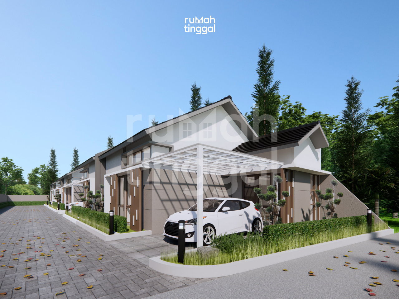 JAPANDI HOOK CLUSTER, rumah tinggal 1 lantai di cluster perumahan, dengan luas bangunan 54.5 m2 yang didesain di atas lahan berukuran 13m x 10m (115 m2). Hunian ini didesain bergaya japan, minimalis, tropis. Area depan terdapat taman depan & samping, serta carport yang memuat 1 mobil. Pintu masuk utama hunian berada langsung didepan. Tatanan ruang pada lantai 1 terdapat ruang tamu. Ruang keluarga didesain menyatu dengan ruang makan dan dapur tanpa sekat sehingga terasa lebih luas. Selain itu juga terdapat 2 kamar tidur utama dan 1 toilet. Pada bagian belakang terdapat taman dan bisa digunakan sebagai area cuci jemur. Hunian ini didesain dengan konsep japan, minimalis, tropis. Tampak depan bangunan menggunakan warna cat yang cerah dan natural, dengan aksen kisi-kisi kayu komposit, serta kusen aluminium untuk pintu dan jendela, Atap pelana dengan tritisan yang lebar, bukaan jendela kaca yang lebar dan tinggi, ditambah dengan vegetasi yang asri memperkuat nuansa tropis pada hunian ini.