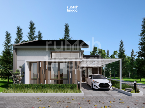 Rumah gaya minimalis tropis ini berada di lahan trapesium dengan bagian belakang lebih lebar. Desain fasad ditampilkan dalam bentuk sederhana dengan dinding finishing cat dan hanya memiliki dua kombinasi warna putih dominan dan diberikan sentuhan warna coklat sebagai aksen pada gate dan area yang memiliki lampu dinding. Layout rumah ini diperuntukkan bagi keluarga 2 anak. Rumah ini memiliki 2 kamar anak dan 1 ruang tidur utama yang besar untuk master bedroom dan storage. Bangunan ini juga dilengkapi dapur, ruang makan, ruang keluarga, dan ruang tamu yang saling terhubung tanpa sekat sehingga memberikan kesan luas. Kedua sisi bangunan juga diberikan bukaan pintu yang lebar sehingga memungkinkan cross ventilation. Penerapan ruang tanpa sekat dikarenakan pemilik masih memiliki anak usia bermain sehingga ruangan luas mampu mewadahi kegiatan tersebut. Selain hal tesebut pemilik masih terlibat kegiatan kemasyarakatan yang membutuhkan ruang luas.