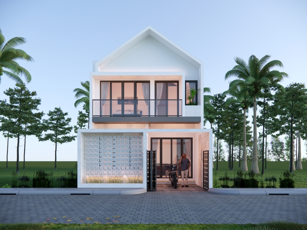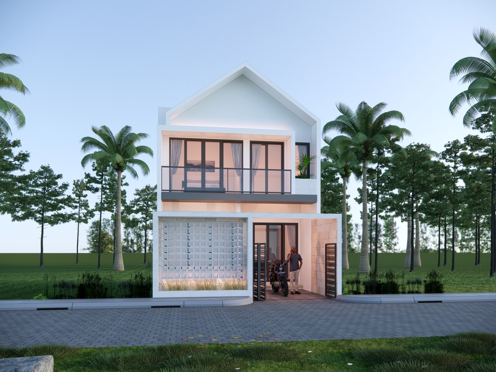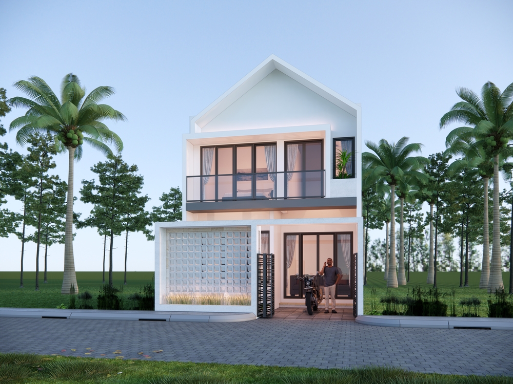 Rumah huni dua lantai dengan gaya desain modern,industrial dan scandinavian. Bangunan dengan luasan bangunan keseluruhannya 84,94 m2 , berdiri diatas lahan dengan ukuran 6 x 10 m . Dengan tatanan ruang pada lantai 1 berupa Carport,Taman,Ruang tamu,Ruang makan,Dapur kamar mandi dan area tangga. Sedangkan tatanan lantai 2 berupa Balkon/teras,2 kamar tidur ,ruang keluarga dan Kamar mandi . Kusen dan daun jedela yang bukaan lebar dengan matrial kaca terdapat funsi sebagai pencahayaan utama dan sirkulasi udara untuk kehidupan didalan rumah tersebut . Finishing matrial batu alam di area carport menambah langgam modern pada bangunan ini . Roster yang terdapat di area pagar sangat membuat bangunan ini tampak berseni dan semakin alami .