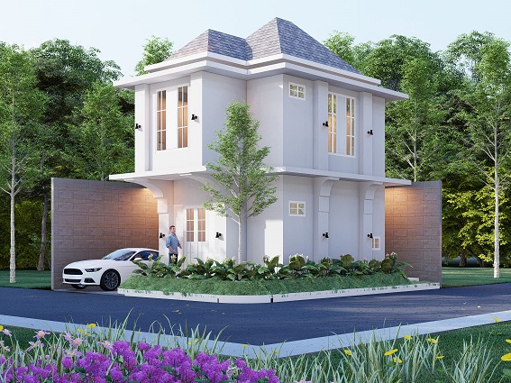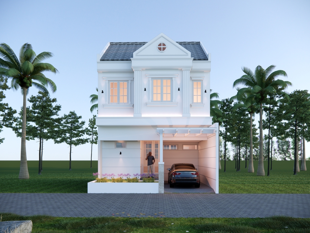 Luxury Claasic House merupakan rumah tinggal 3 lantai bergaya classic dengan luas total bangunan 363 m2 yang didesain di atas lahan hook berukuran 14 m x 20 m (280 m2). Rumah ini didesain fungsional, nyaman, dan elegan. Pada area depan rumah terdapat carport dengan kapasitas 2 mobil, taman depan dan samping, serta teras. Terdapat 2 akses pintu masuk, yaitu pintu masuk utama melalui teras depan dan pintu masuk menuju area servis melalui sisi samping bangunan. Memasuki lantai 1 akan disambut ruang tamu dengan view taman samping yang luas, powder room, serta ruang makan yang didesain menyatu dengan dapur. Selain itu di lantai 1 juga terdapat kamar tidur tamu dan toilet. Pada bagian belakang rumah terdapat patio, taman, dan kolam ikan untuk area bersantai. Menuju ke lantai 2, terdapat ruang keluarga yang terhubung ke balkon belakang dan 3 unit kamar. Kamar tidur utama dilengkapi dengan walk in closet dan toilet dalam, serta 2 kamar tidur anak yang masing-masing sudah dilengkapi toilet dalam dan terhubung ke balkon depan. Selanjutnya pada lantai 3 hunian ini dikhususkan untuk area servis berupa kamar tidur ART, toilet ART, serta ruang cuci jemur. Akses menuju area servis dari lantai 1 menggunakan tangga putar yang terpisah dengan tangga utama. Luxury Classic House dirancang dengan konsep rumah classic ala Eropa yang memberikan kesan kokoh, mewah, dan elegan. Penerapan gaya classic pada tampak eksterior rumah terlihat dari bentuk bangunannya yang simetris dan proporsional, peletakan pilar kolom di depan bangunan, ukiran-ukiran khas bangunan classic, serta penggunaan material marmer berwarna putih. Pada hunian ini terdapat bukaan jendela yang lebar di setiap ruangan untuk mengoptimalkan sirkulasi cahaya dan udara alami di dalam rumah. Adanya vegetasi di area taman dan kolam ikan juga menjadikan hunian ini nampak semakin asri.